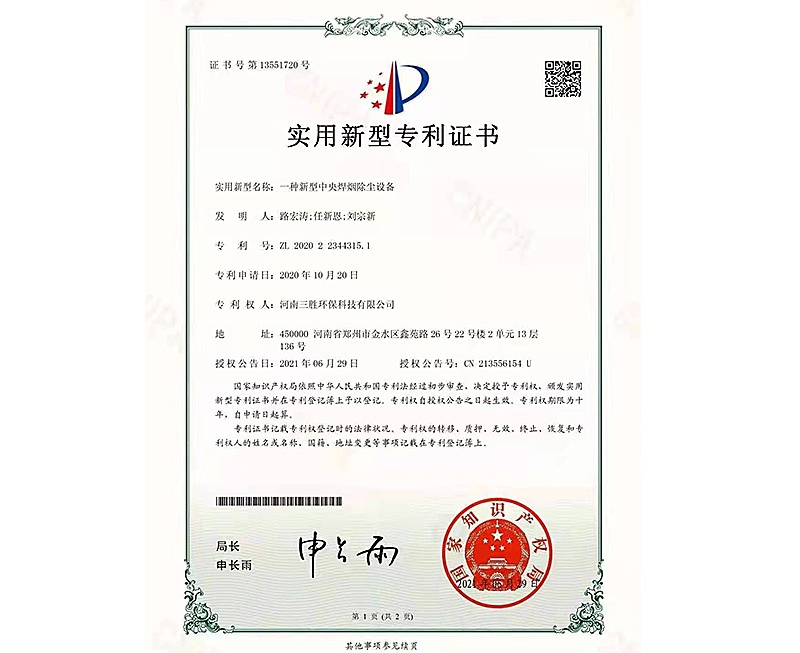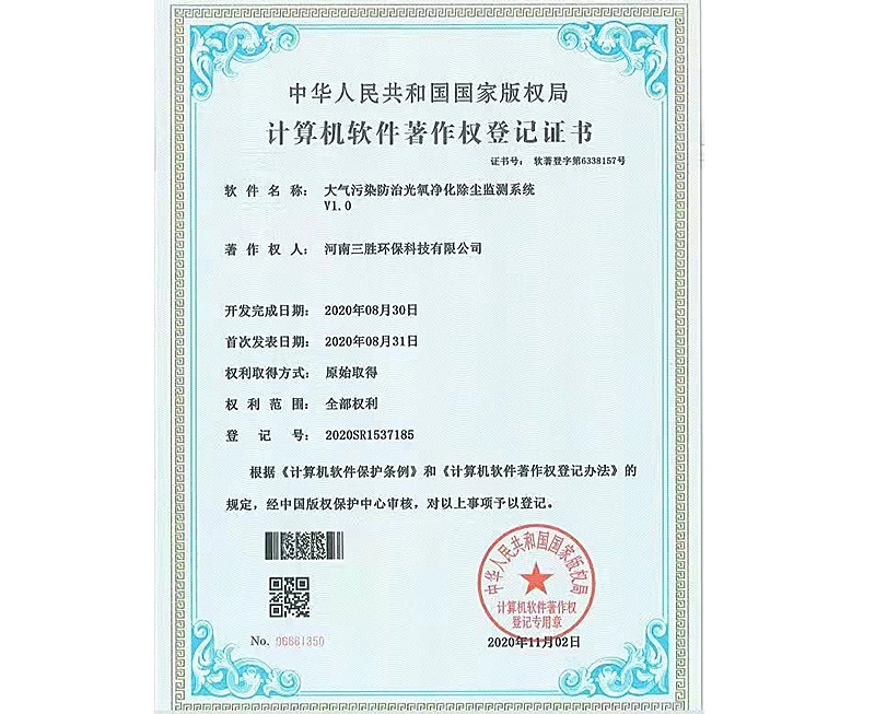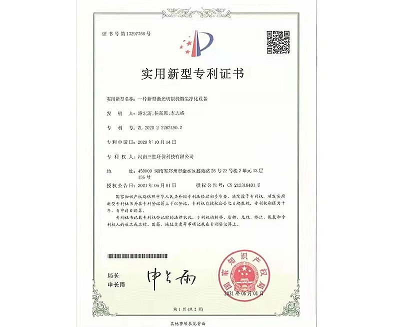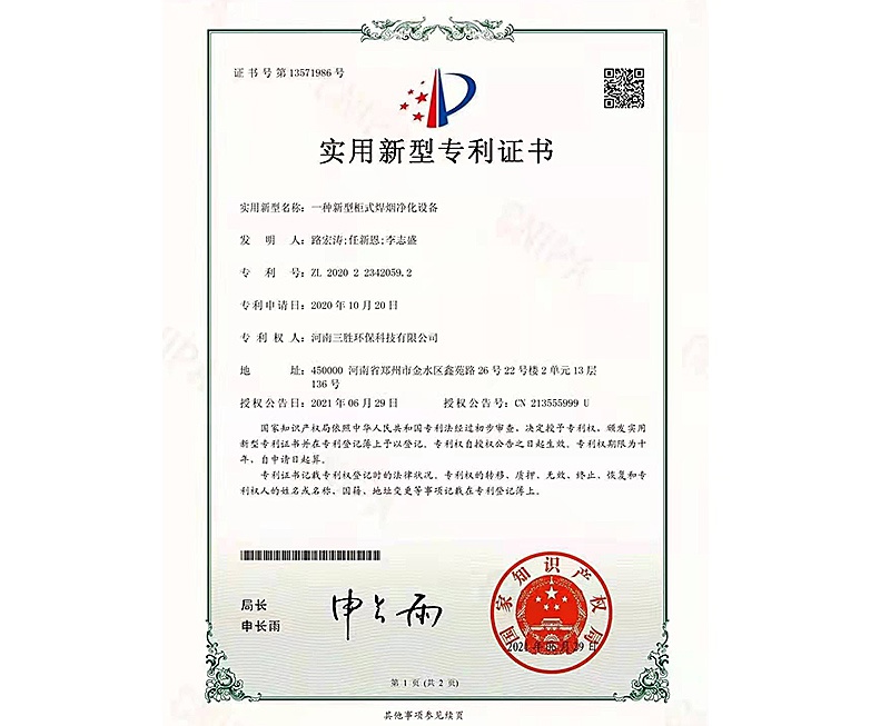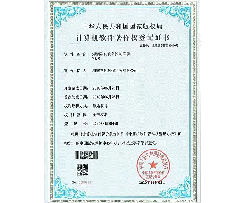 焊煙凈化設(shè)備控制系統(tǒng)證書(shū)